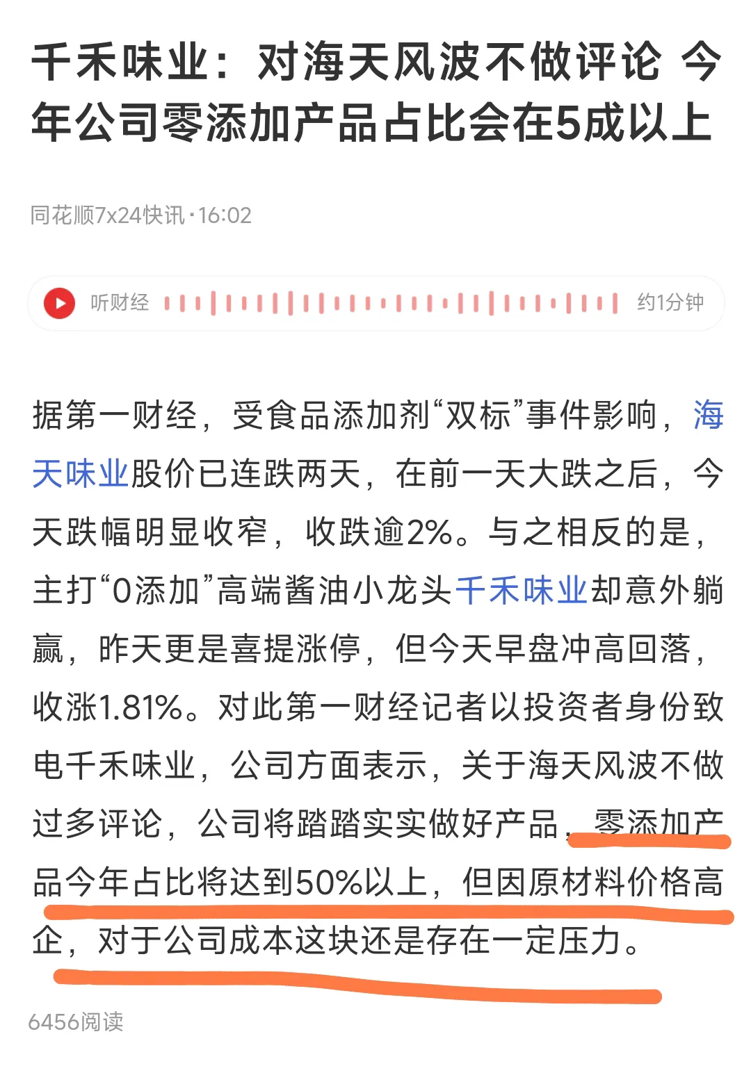 8.主力清楚千禾味业的产品中有不少是有添加剂的且这家公司就是做食品添加剂起家,所以也就敢做个高抛低吸,没有持续发力抢筹,被“噱”进去的散户很难指望赚大钱了。