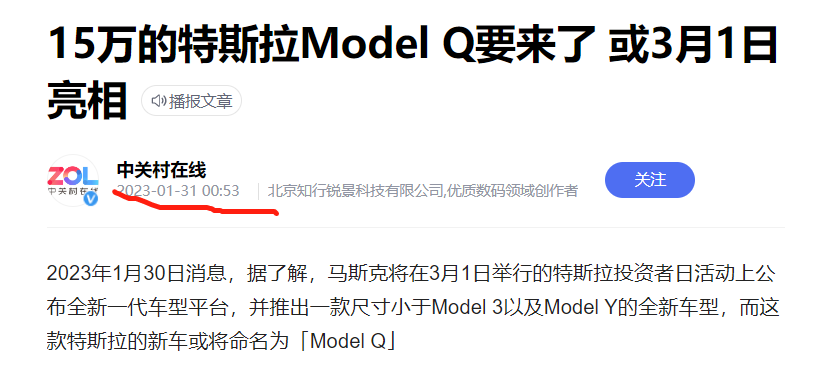 5.1月底的各路媒体都在报告这个Q系列的上市为特斯拉2023年目标销量的促进作用,在A级别市场又引发一场风暴,不过可惜的是比亚迪秦PLUS DMI 倒是正常上市,Model Q推迟上市失去了在A级市场抢占份额的先机。