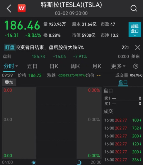 3.但是真正让投资者感兴趣的2个话题内容太少,甚至没有提及,导致活动后特斯拉股价盘后下跌5.66%,股价跌掉400亿美元,是从1月3日以来跌幅最大的。