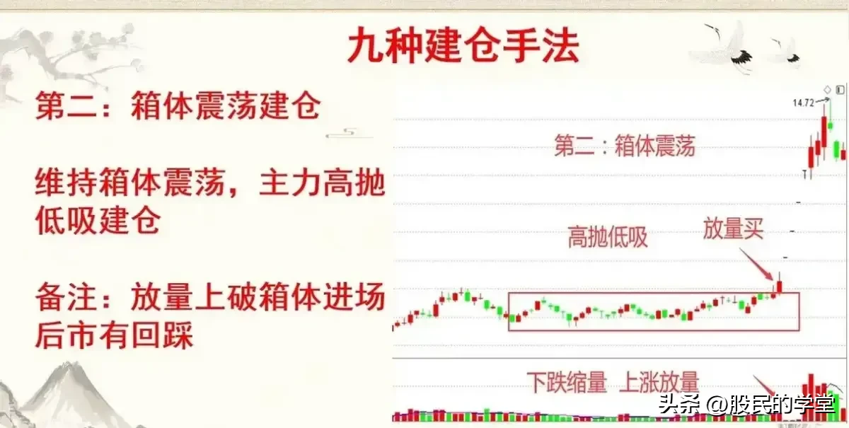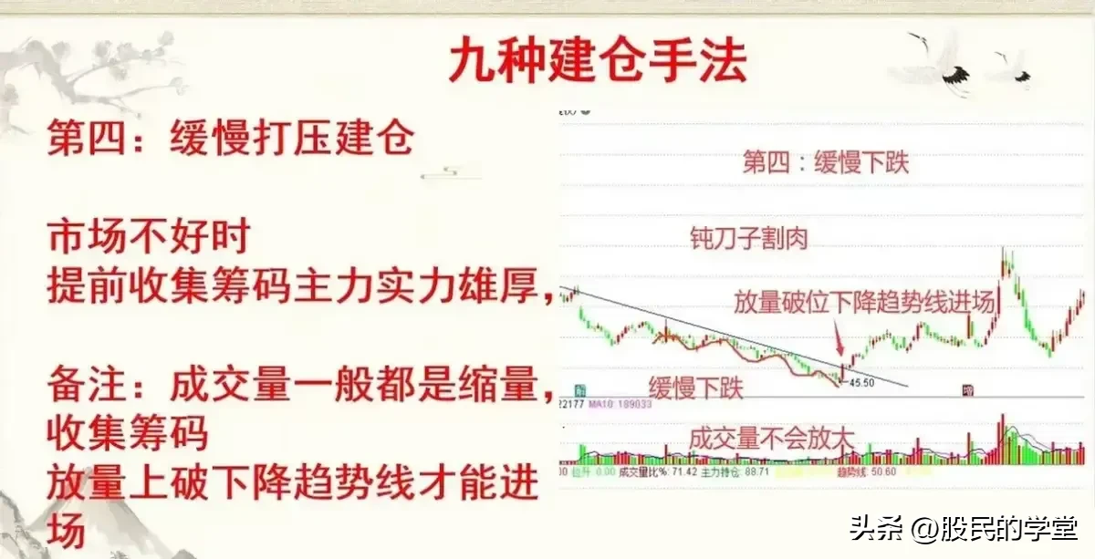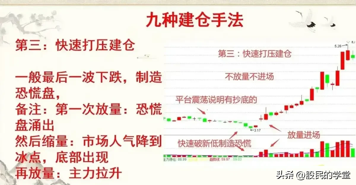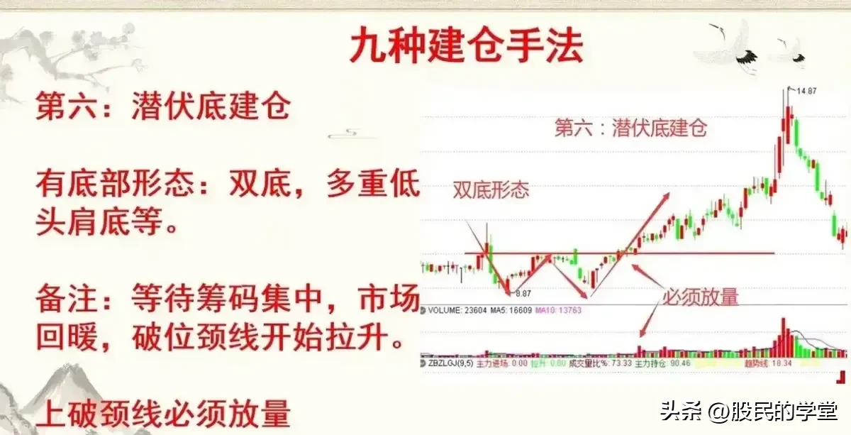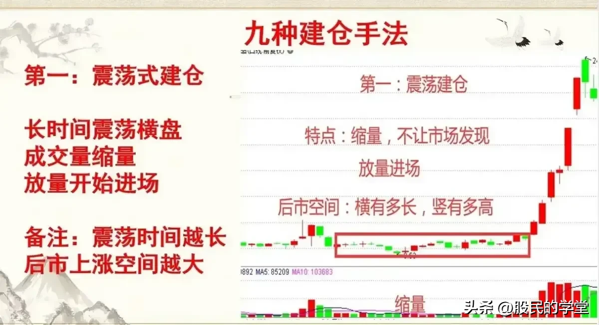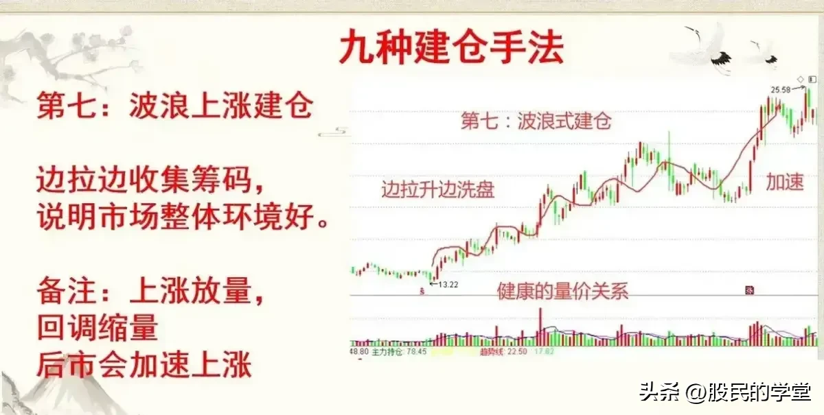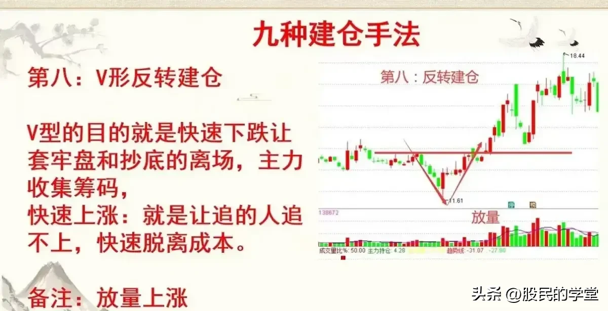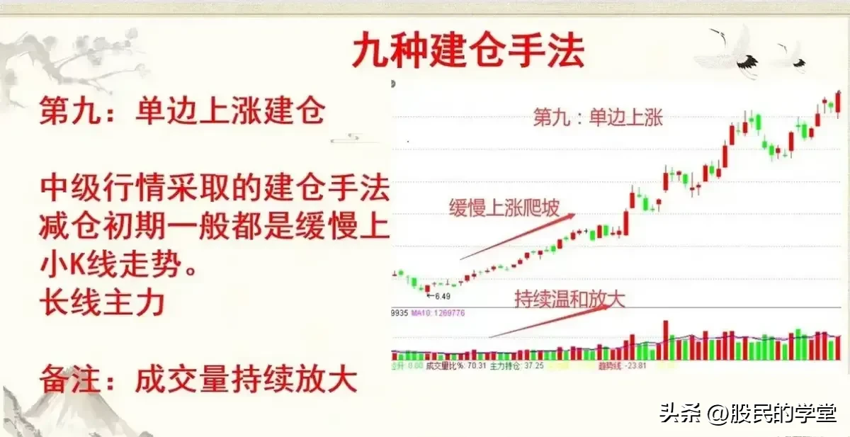 11.主力建仓手法:震荡式建仓箱体式建仓快速打压建仓缓慢打压建仓快速上涨建仓潜伏底建仓波浪上涨建仓V形反转建仓单边上涨建仓学会这9种主力建仓的形态,让我可以提前抓到主升浪,不怕主力如何洗盘,跟上主力崛起的顺风车。