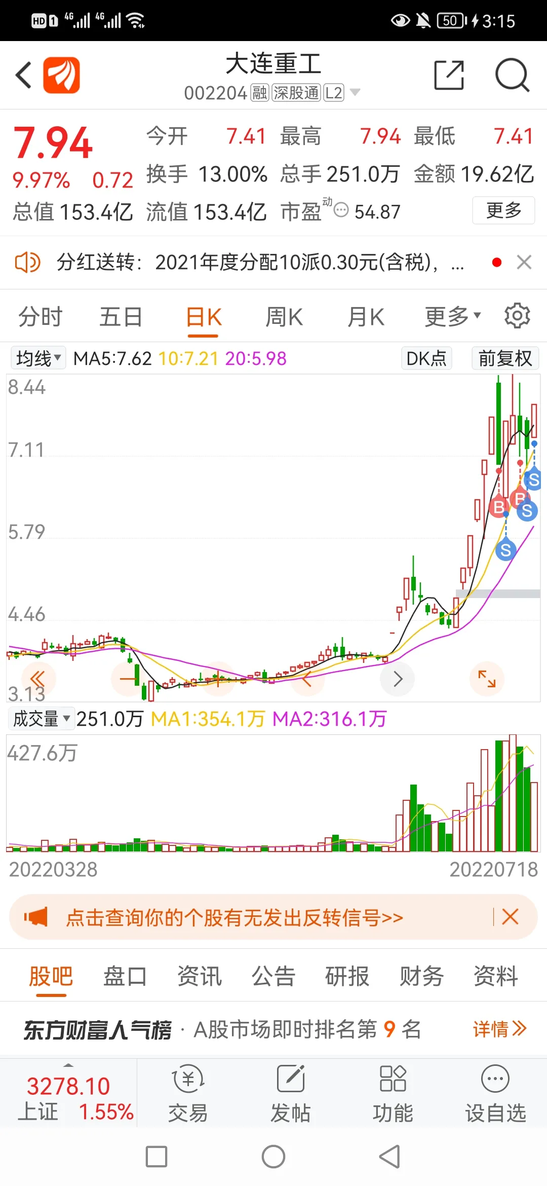 15.今天就把大连重工全卖了,金智科技卖了一半。
