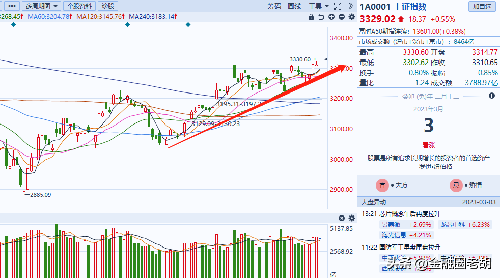 接下来大家要珍惜大盘3300点附近的日子,因为主力目前已经不再压盘,二月份的金融数据一旦落地,对于市场来说就是明牌,或者说市场所有资金都开始达成共识,那么指数会越来越高。