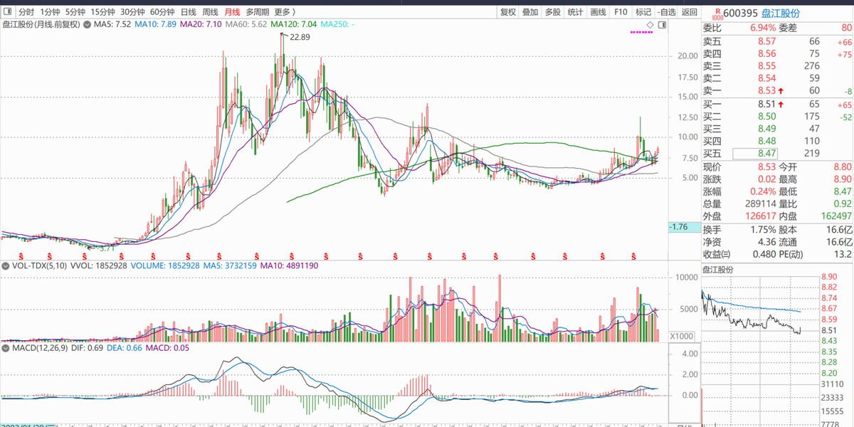 16.盘江股份有资产注入题材,调整时间长,价格不高,可以逢低关注。