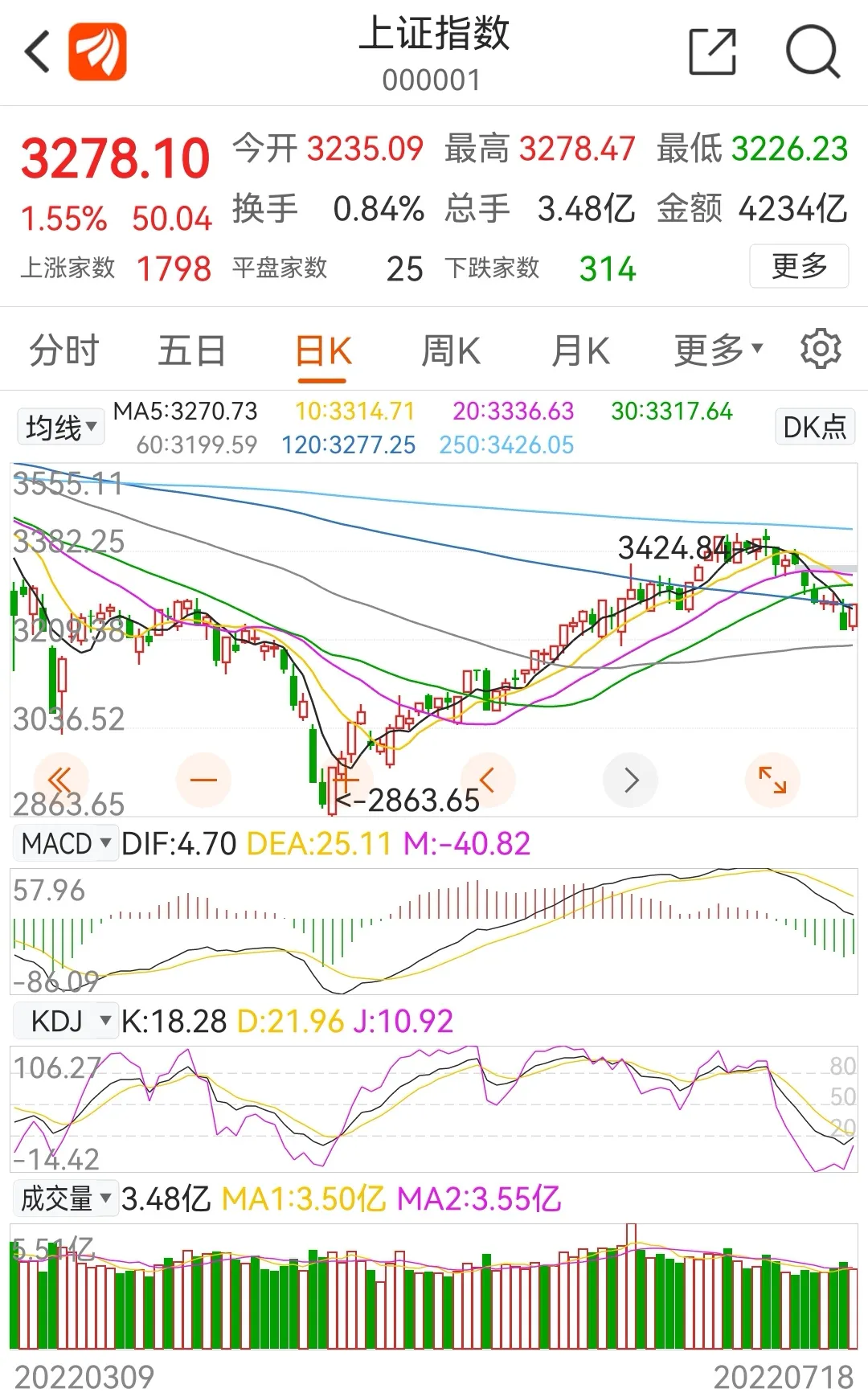 4.今日收盘,东财的股价收复了5、60、120日均线,MACD绿柱缩短,KDJ指标也开始拐头向上,技术走势正在逐渐修复,消息面的利好则是子公司东财证券的半年报业绩预报超预期。