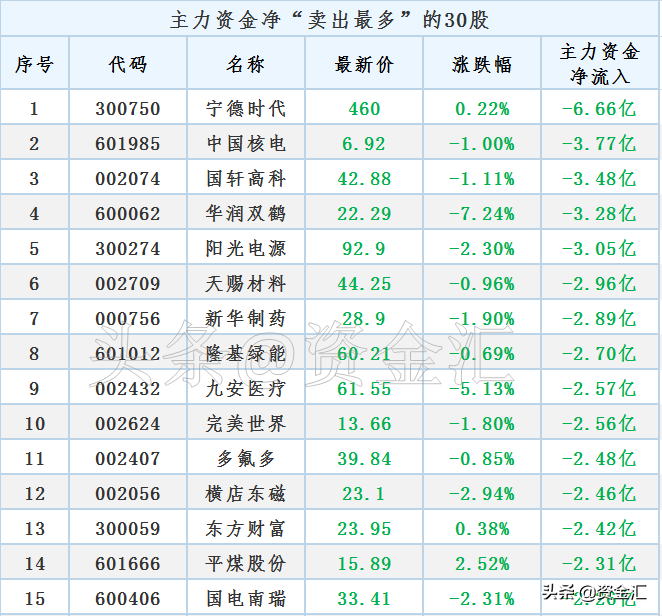 1.这些股明天危险了,不做“接盘侠”,今日主力资金“大幅卖出”30股名单更新日期:8日收盘。