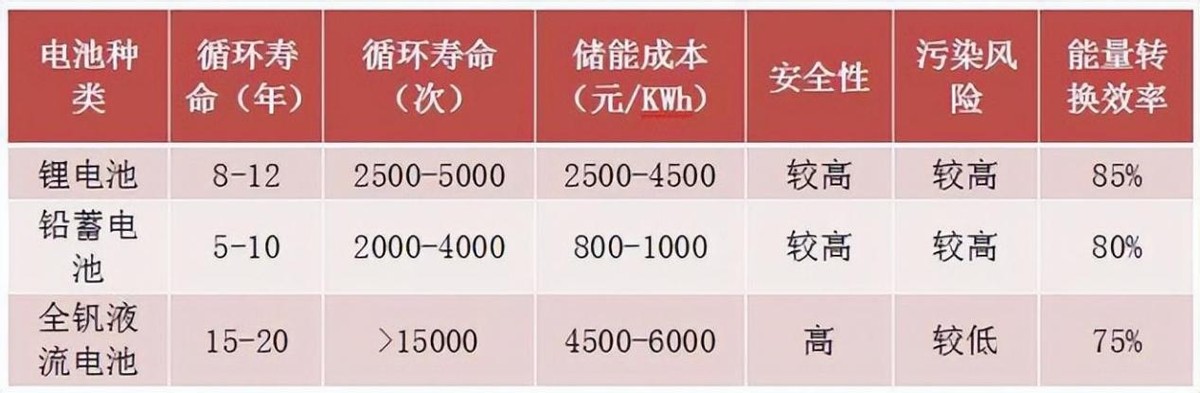 其次,钒电池的循环寿命很长,在现有市场的所有电池中,都是数一数二的存在,循环寿命年限高达15-20年,使用次数更是超过15000次,远高于锂电池。