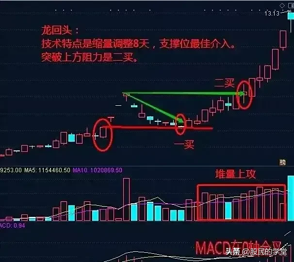 1.炒股16年,技术指标研究了很多种,也总结了多种战法,短时间收效较大的是龙回头战法,顾名思义就是只做龙头股的第二波段上涨,下面分享这个战法给大家,建议收藏转发!所谓“龙回头战法”,就是指主力资金在大幅拉升后由于短期获利丰厚,股票抛盘增多,需要通过打压股价来达到洗盘目的,为继续拉升股价或出货做准备,从而给了抄底资金一个买点。