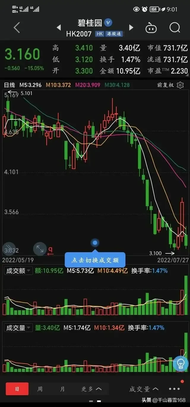 3,碧桂园,股价从16.7元,跌到3.2元,