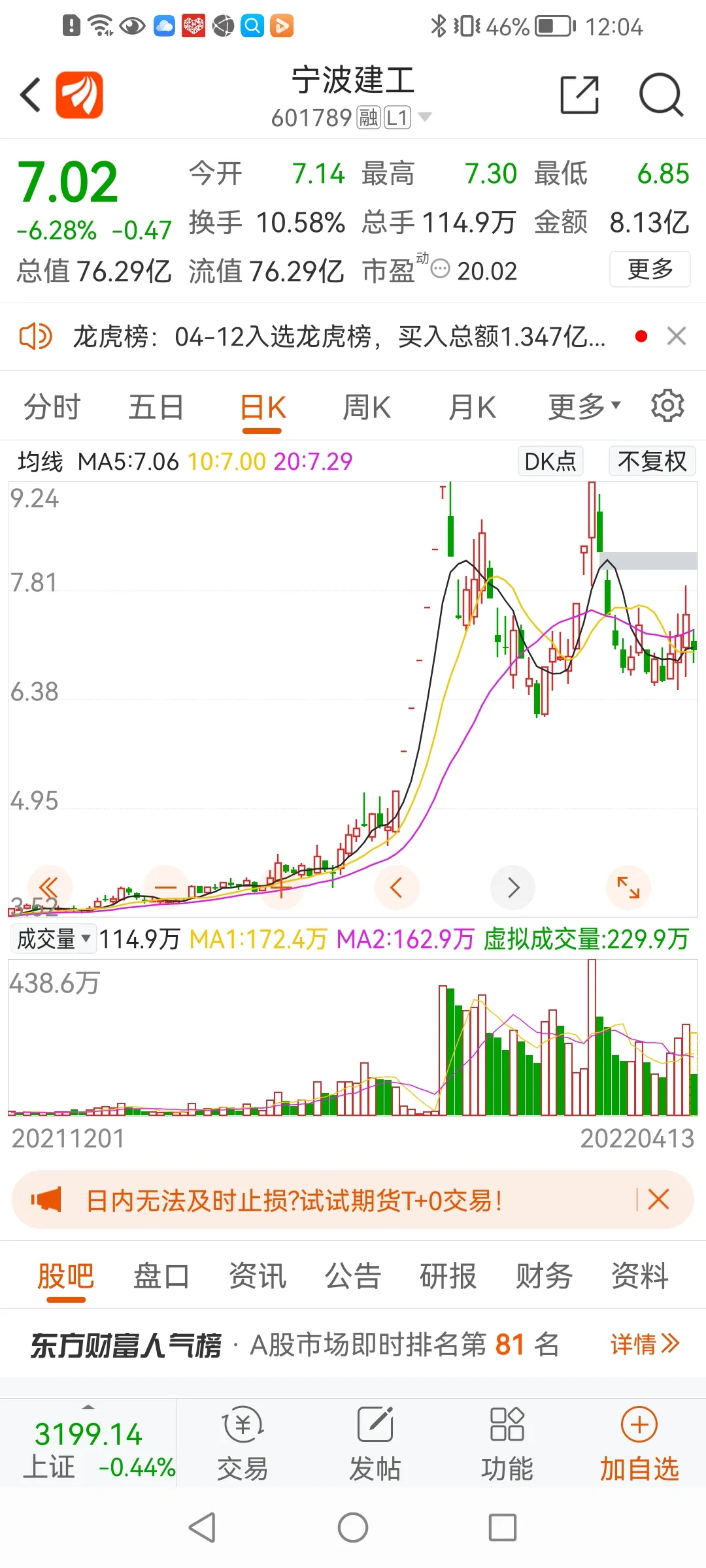 14.昨天基建板块调整,我却还追高买入了宁波建工,今天见它跌了又5个点又加仓了;以及买入嘉凯城。