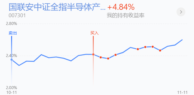 9.半导体板块 国联安中证全指半导体产品与设备ETF联接C 、 金信行业优选灵活配置混合 :今天加速上涨,实体阳线幅度不是很大,未来还有空间。