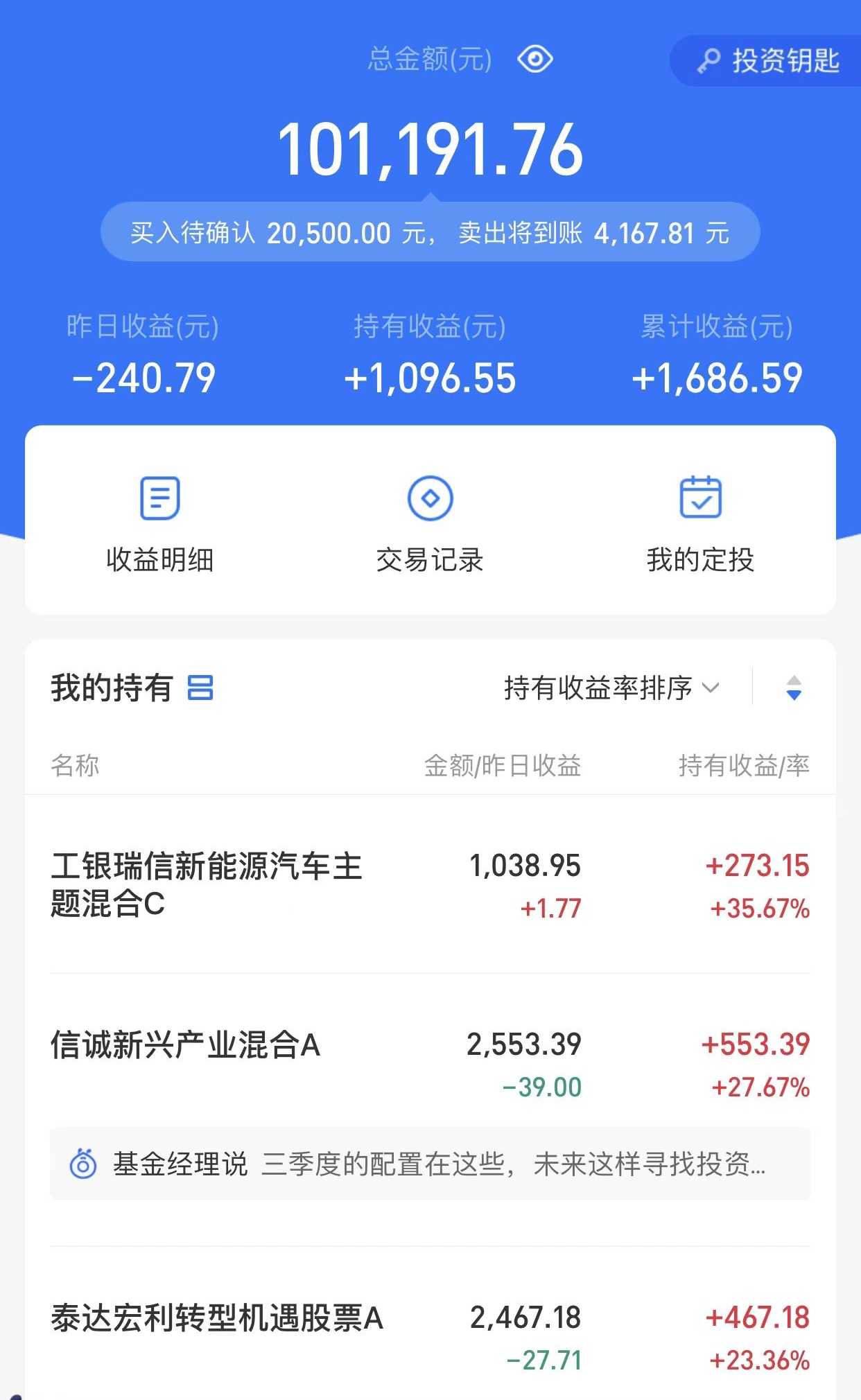 13.新能源板块 工银瑞信新能源汽车主题混合C 、 泰达宏利转型机遇股票A :今天整体新能源小幅上涨,涨幅05%以下,没怎么发力,不知道明天怎么样?还是维持高位震荡的判断。