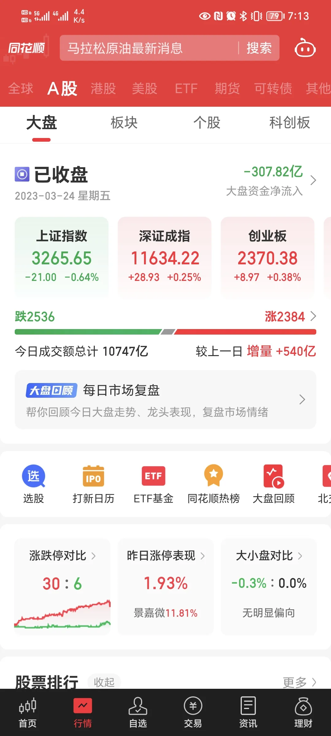 1.20230324股市复盘:指数分化,蓝筹调整,中小盘活跃今天指数分化,上证指数收3265点,跌0.64%,创业板和科创板则是分别上涨。