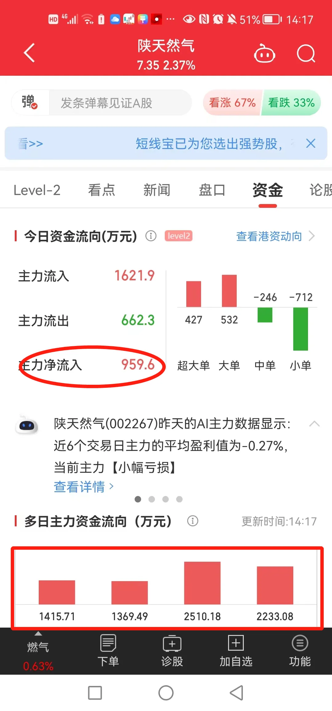 1.今日发现了几支自己感觉不错的股票,加入到自选股,等待上车的机会,现与大家分享一下:1、002267 陕天然气该股票今天出现了重上“5线”形态,股价重新站上5、10、20、60、120日均线,市场上有重上5线金不换的说法,且资金净流入900多万元,预示着在不久的将来上升通道可能将要打开。