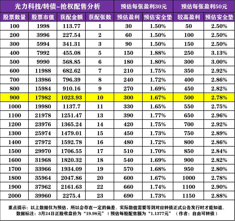 预估每股配售额为1.1377元,买入900股“光力科技”的股票,未来“大概率”可获配10张转债。