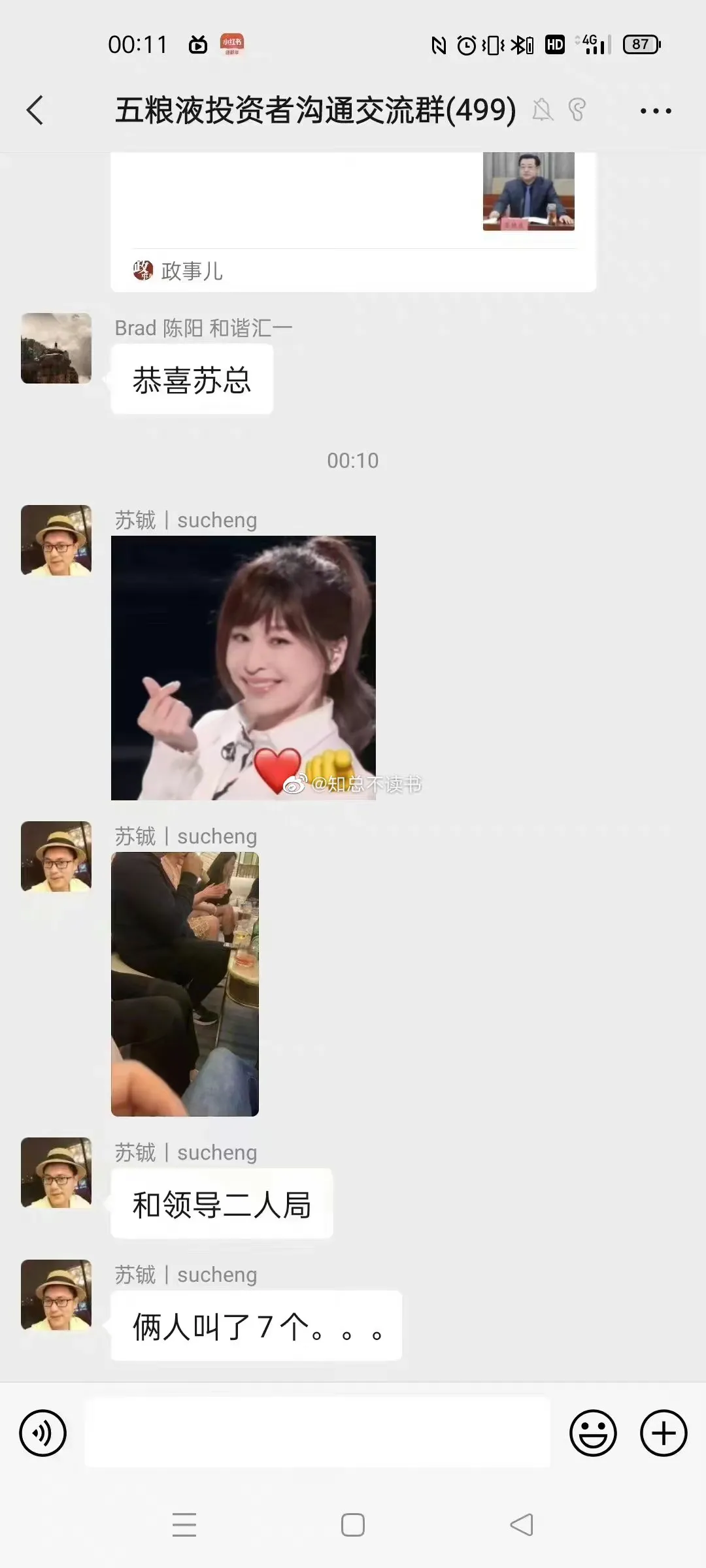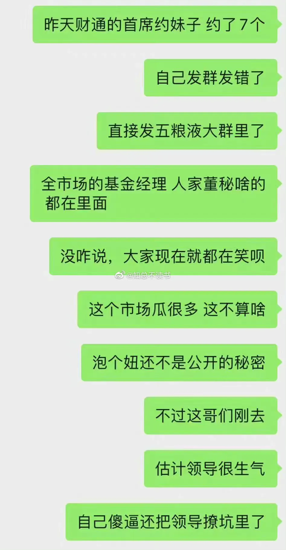 9.”两年后的今天还没有过完正月,苏铖已换了天地,到了总部在杭州股票代码是601108的财通证券当了新首席,一个酒局叫七个小姐,陪一个领导,截图只能看到西裤与裙装大腿。