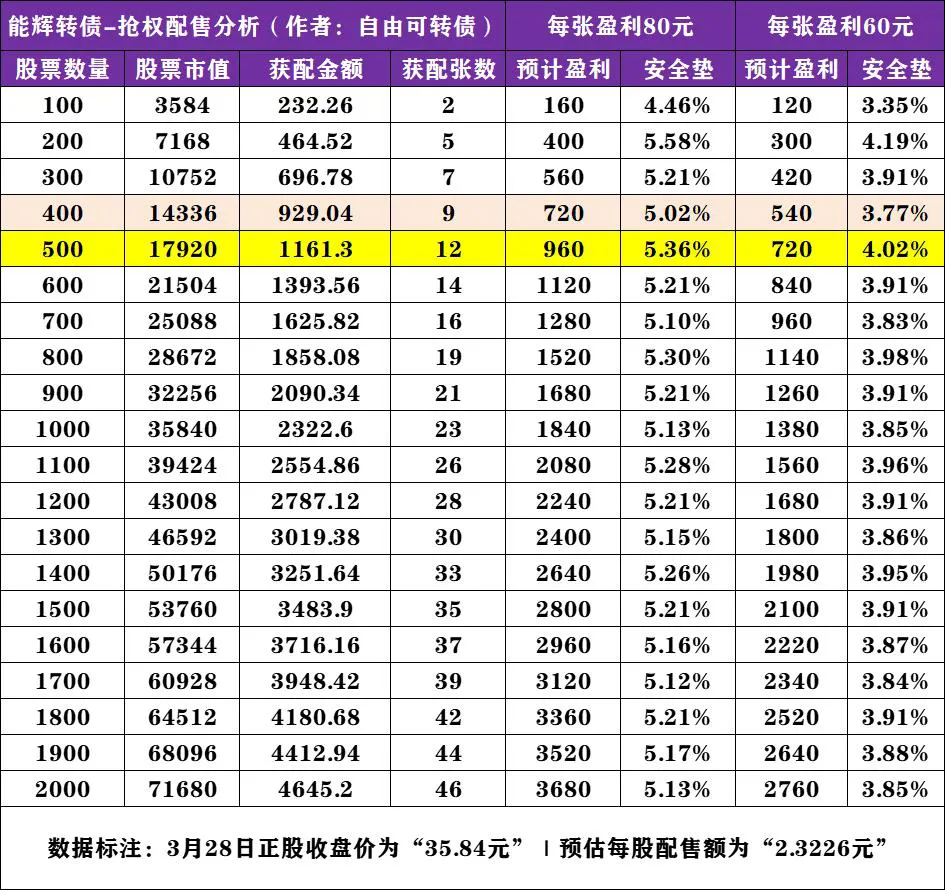 能辉转债-配债计算