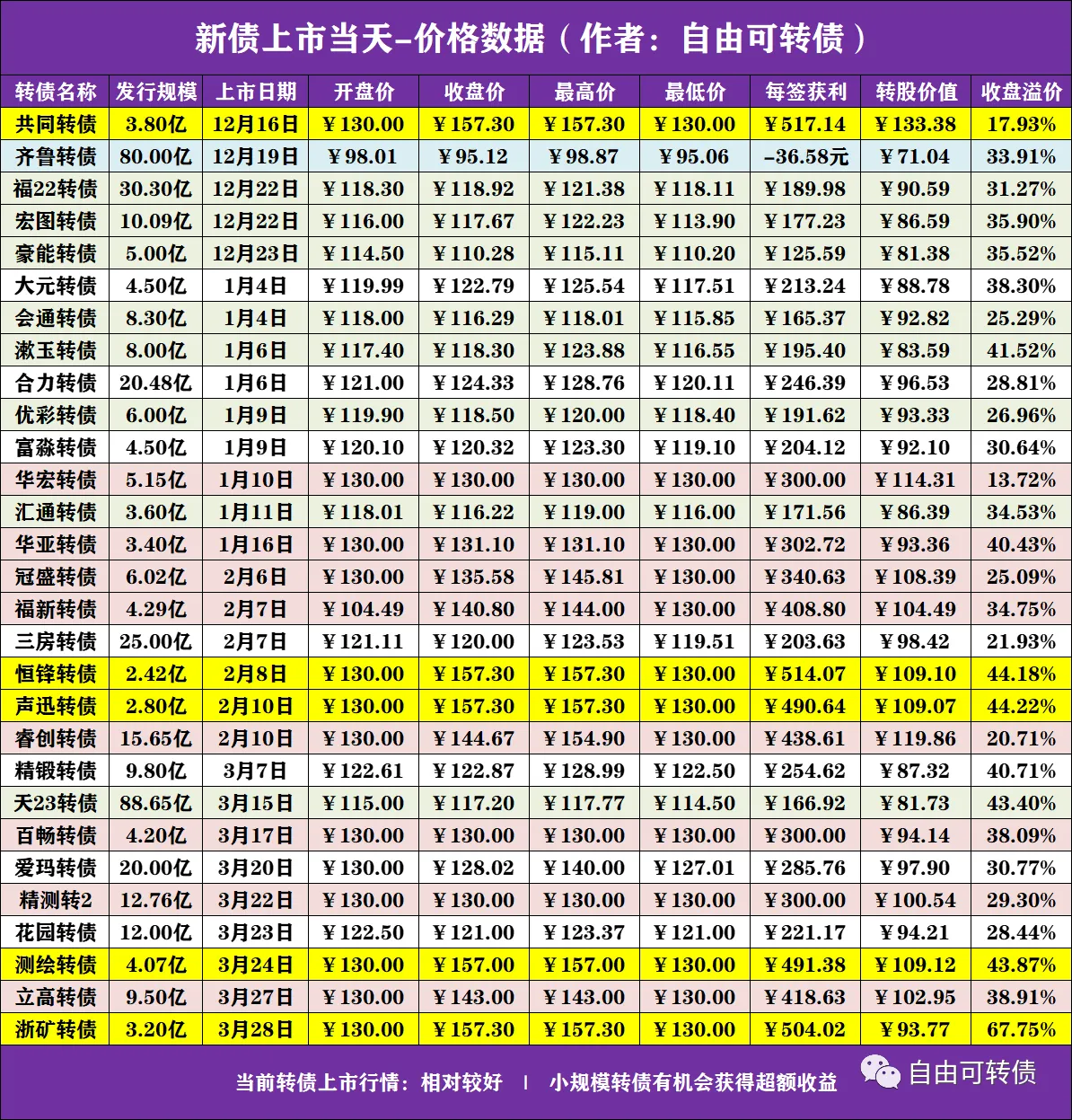 欢迎持续关注:自由可转债