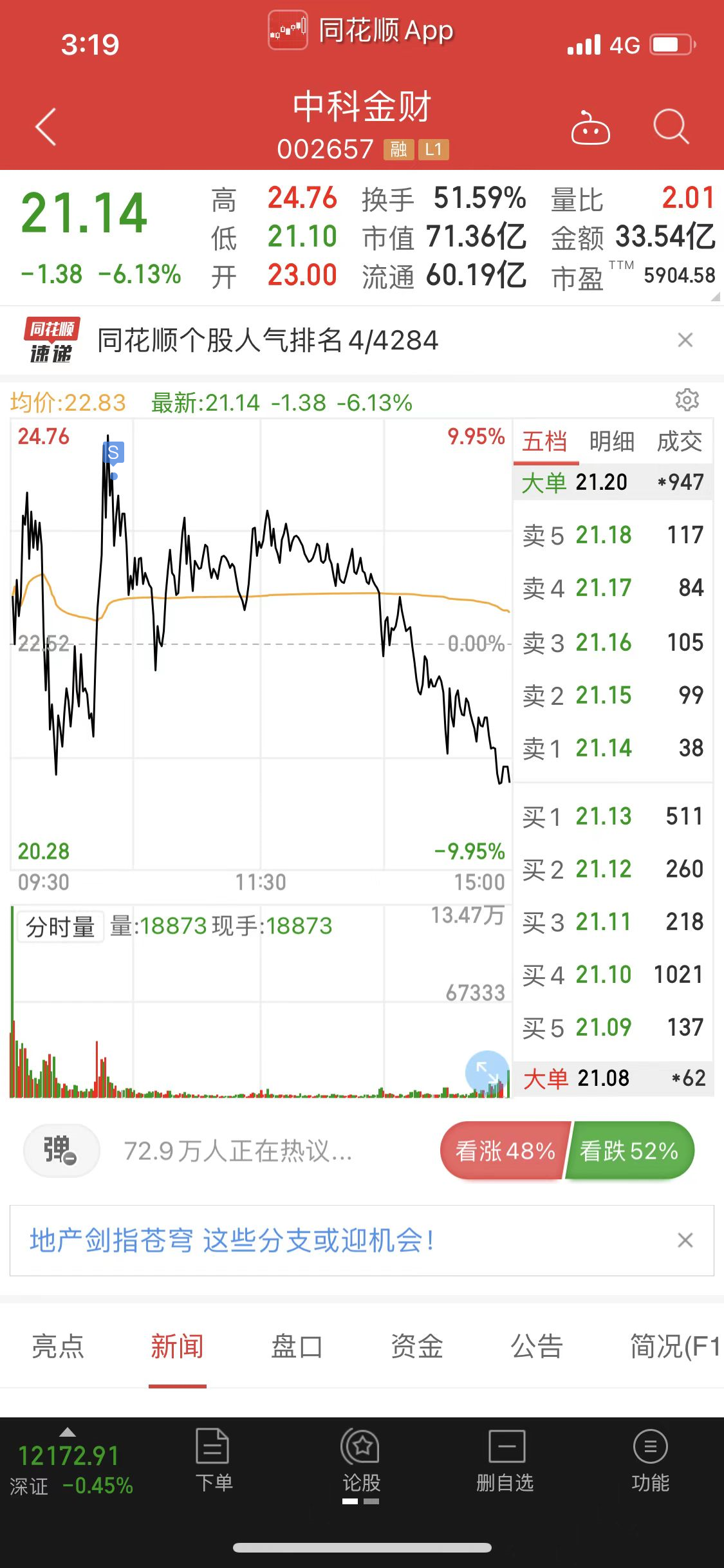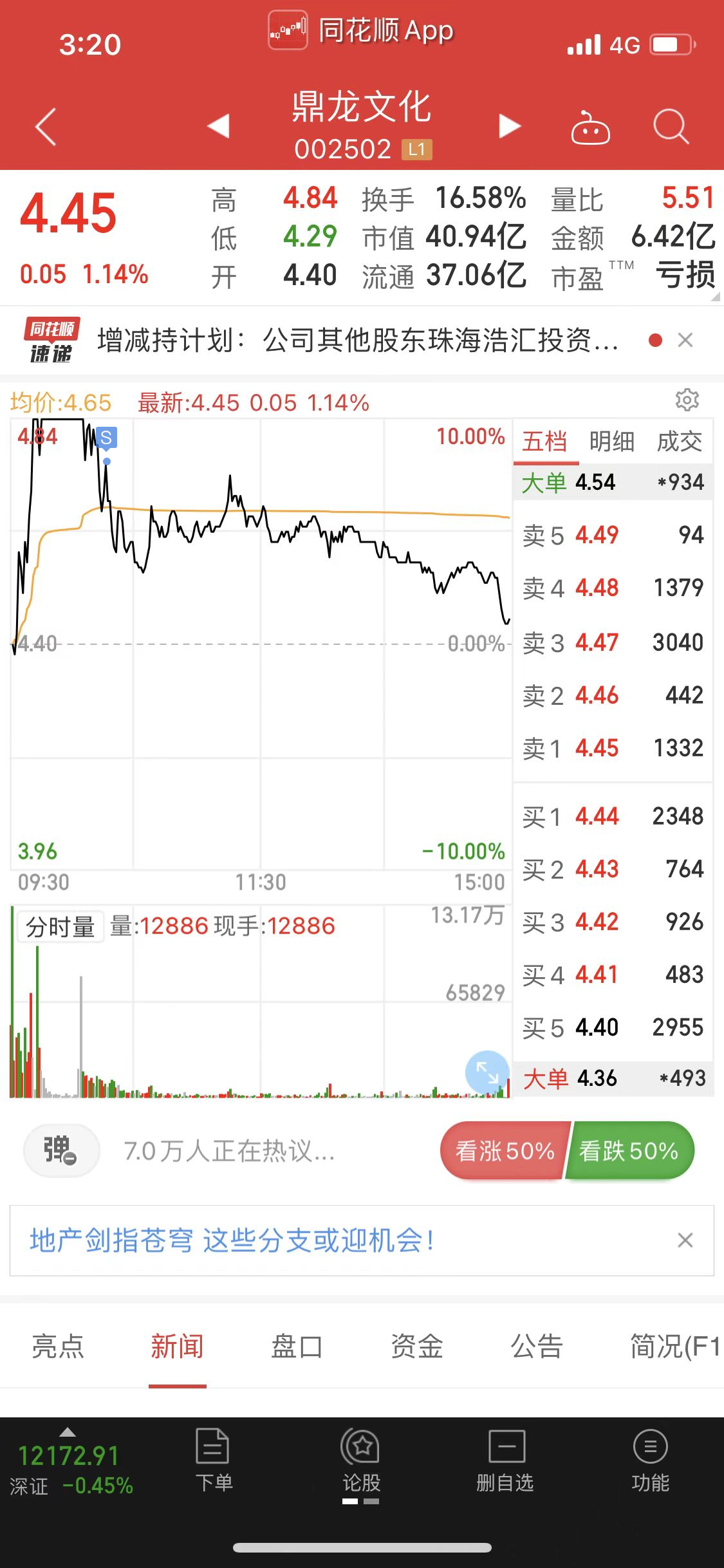 1.4月6号打板华夏幸福,卖出中科金财,鼎龙文化超短行情复盘:今天盘面总体感觉市场还是处于混沌期,除了市场一阶梯队的房地产比较整齐外,其他题材都非常凌乱,而上周打板数字货币中的龙头股中科金财经过今天与小弟楚天龙的市场追逐赛后完败告终,楚天龙成为数字货币新龙头股,中科金财在早盘开板后一路砸盘,中间试图夺回主控权,可惜力度不强午盘被按的死死的,好在早盘看形势不对,将手里的持仓果断盈利出局,换票市场的一阶梯队房地产,因为市场题材重点核心还是房地产,由于假期期间各种利好消息,地产板块今日持续走强,其中作为地产板块中的龙头股中交地产走出了7板的高度,而下面小弟纷纷拥挤而上走出3板4板,毫无疑问接下来一周内市场的核心还是围绕的着房地产,但是板内个股分歧较大,情绪分化明显,高位股明显不适合去追高,而后排个股表现欲望很强势,个个相争想走出中军迹象,这也是我今天打板的目标。