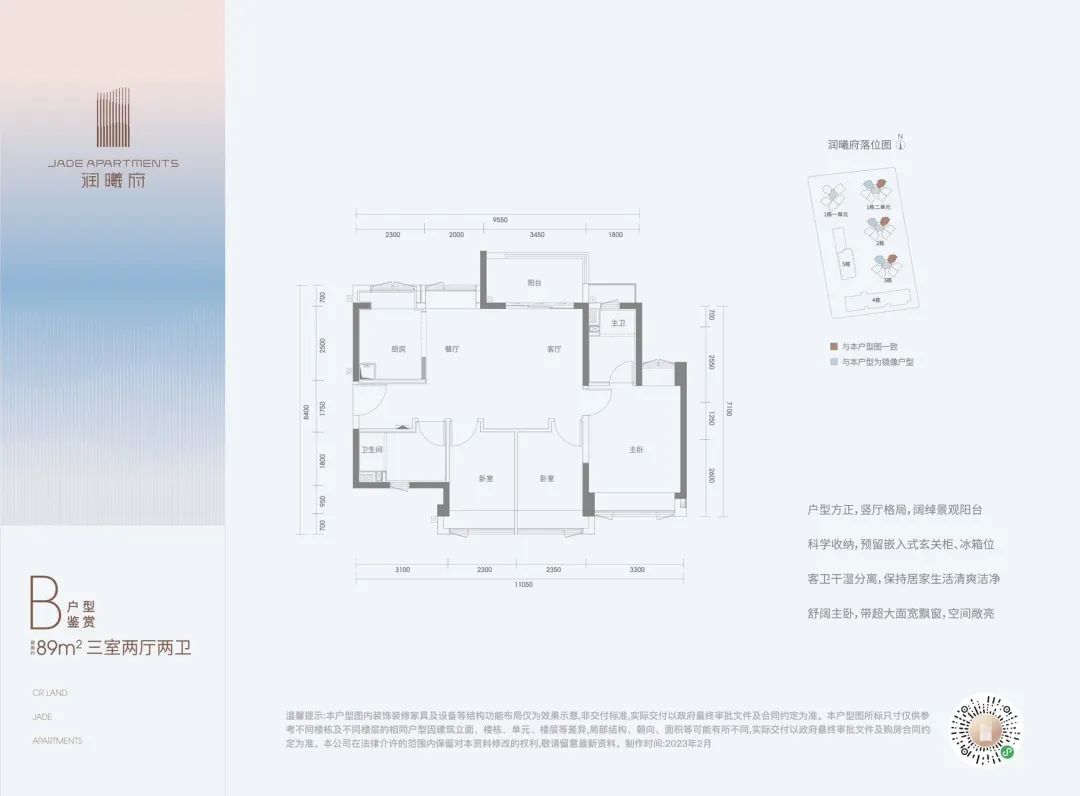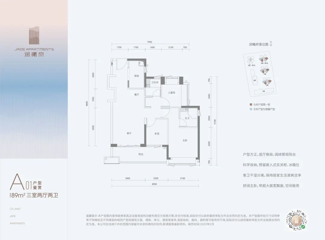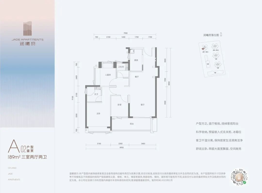 项目推192套89㎡三房两卫户型,备案均价4.71万/㎡,送简单装修,梯户比:2栋2梯5户,135栋2梯6户,整个项目总计可售商品房住宅724套,车位1536个。