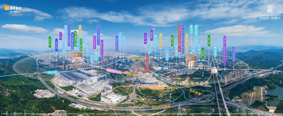 教育资源:以项目为中心,直线一公里范围内有多所学校:长圳小学、华中师大附属勤诚达学校、凤凰城实验学校、在建的深中学校(光明部)、深圳第十五高级中学等教育资源。