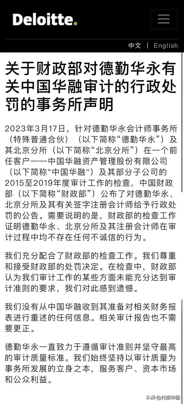 【寰球• 时事-国际观察-2023-485】#中国财政部罚德勤超2.1亿人民币##财政部处罚德勤和华融#【中国财政部罚德勤超2.1亿人民币。德勤迅速回应:尊重和接受财政部处罚。网评:罚得还是有点少,理应罚个倾家荡产】3月17日,国家财政部官网发布消息公布称,对华融和德勤依法作出的行政处罚。德勤迅速回应:尊重和接受财政部处罚。