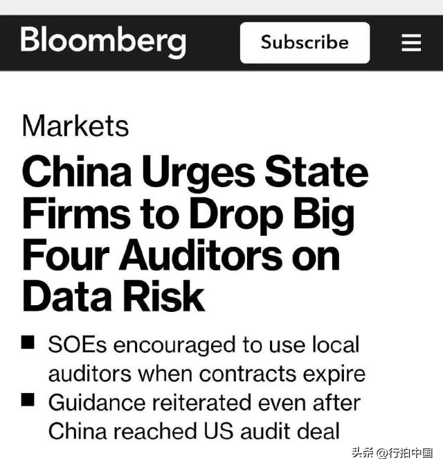 今年2月,中国政府对一些国有企业发出呼吁,建议他们放弃“四大审计”公司的服务,这“四大审计”包括普华永道、安永、毕马威和德勤四家会计师事务所,都是西方机构,同时也是中企在美上市时,美方指定的会计师事务所。