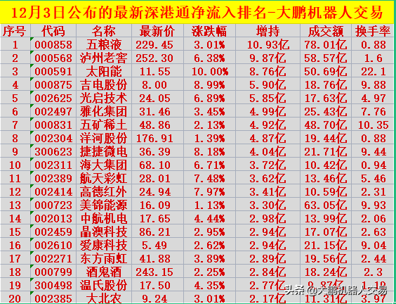 重磅消息!12月3日刚刚公布的北向资金深股通净流入排行榜,看看有没有你的持仓股: