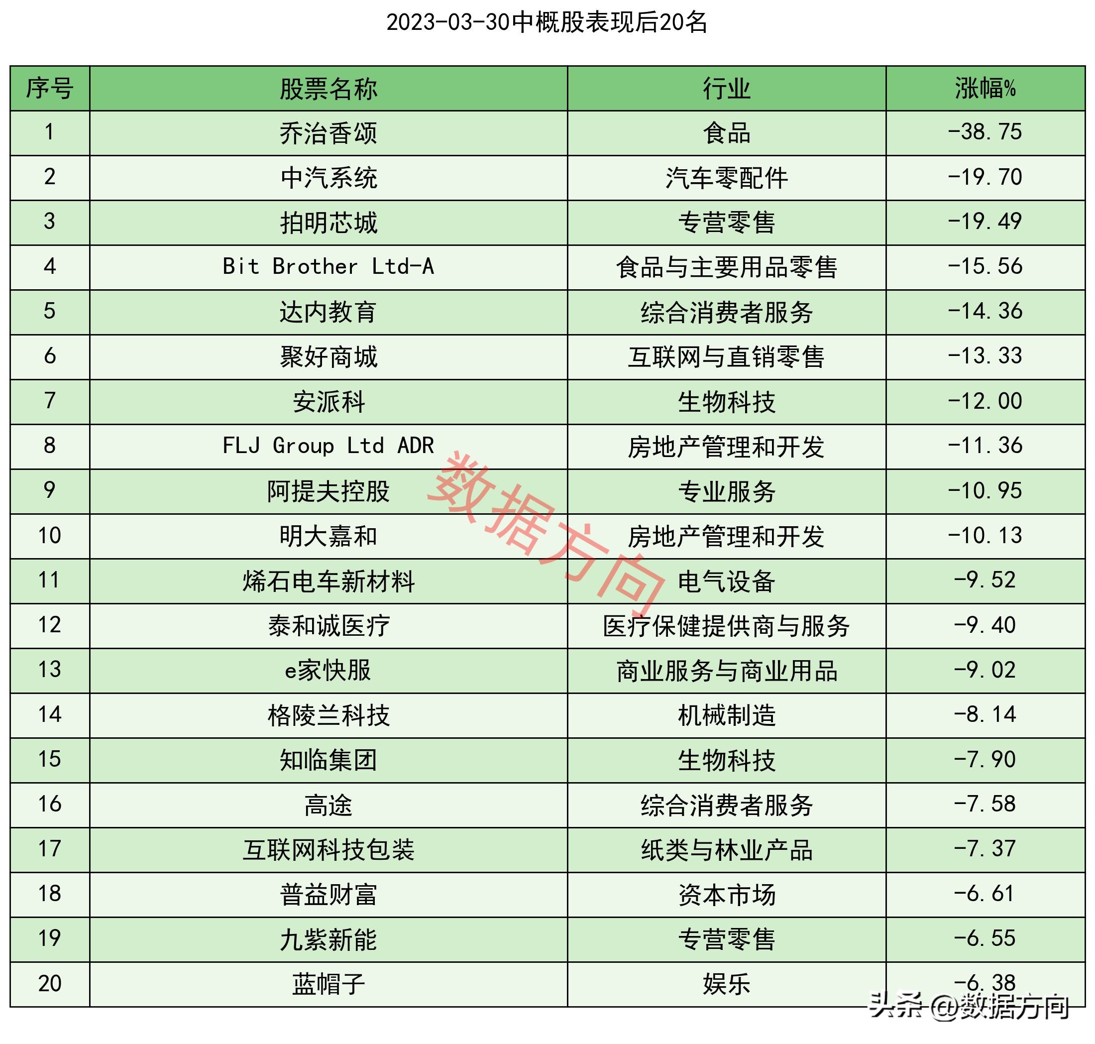 3.美股表现后10名的板块