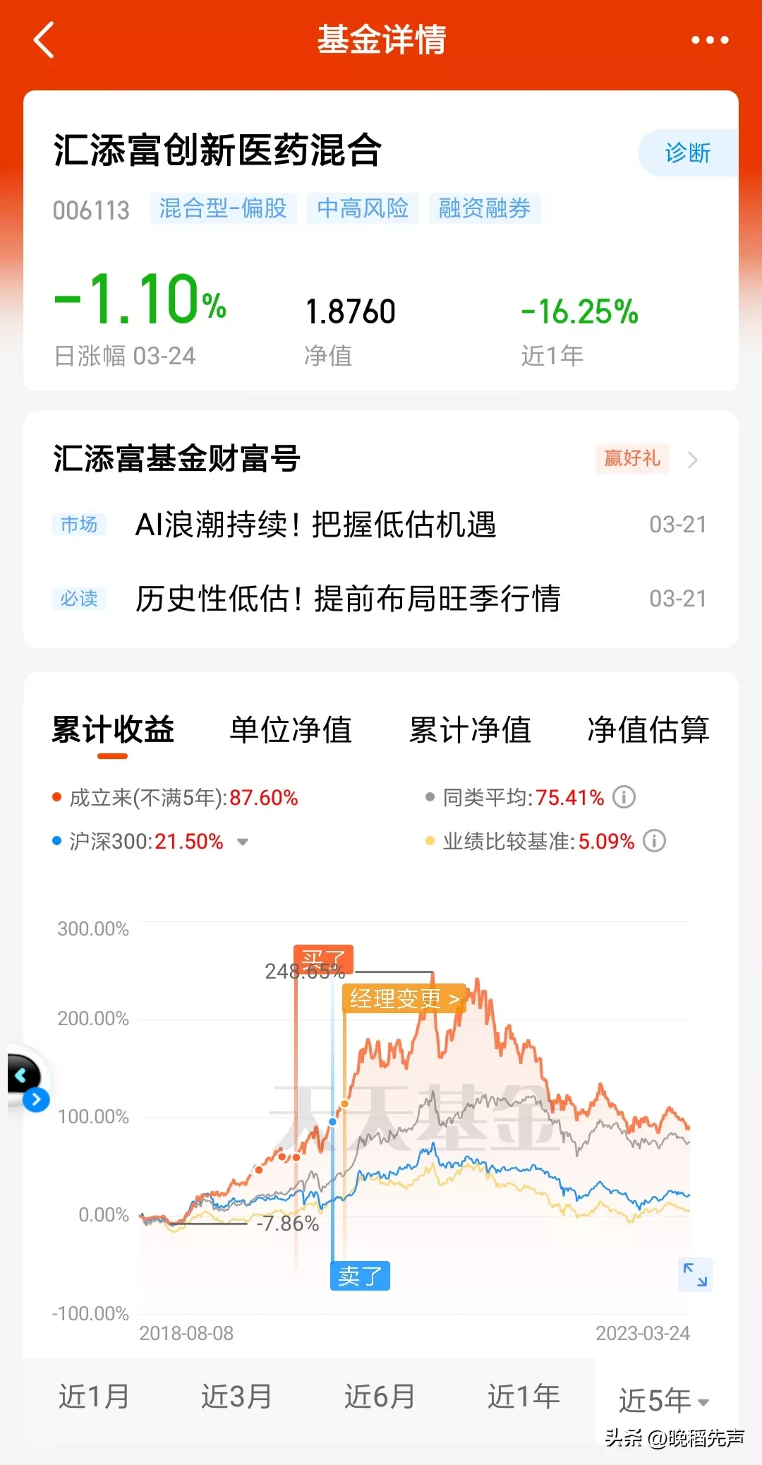 2.几年总结下来,赚钱不多,踩坑不少,略有一些心得体会:1、完全把赚钱的事交给基金经理,不是一个好的选择,这样并不能让你赚钱,要学会择时。