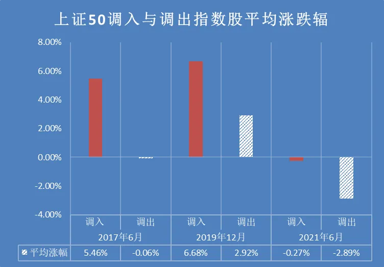 我们以机构关注比较多的上证50指数情况为例。统计最近五年三个时点数据发现,2017年6月调入与调出成份股平均收益率差为5.51%,2019年12月这一收益率差缩减为3.76%,2021年收益率差进一步缩减为2.62%。也就是说,国内市场指数效应依然存在,但效果明显减弱。目前,国内指数基金,特别是ETF基金还在快速发展中,可以预见,不远的将来,国内市场被动投资生态系统也将进一步演变,指数效应也会消失。特别是今年6月的调整,调入股平均跌0.27%,调出股则平均下跌2.89%。