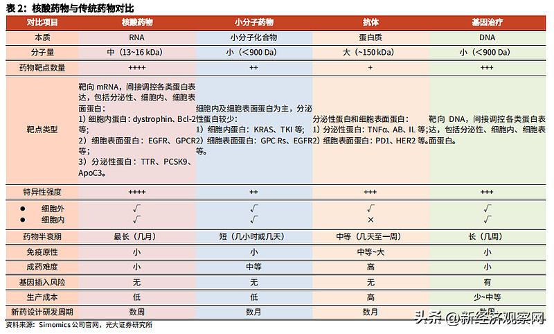 6.相较于传统的小分子化药和抗体药物,核酸药物以mRNA或其它RNA为靶点,从基因水平便开始疾病治疗,能从源头进行干预,相比传统药物有更明显的优势。