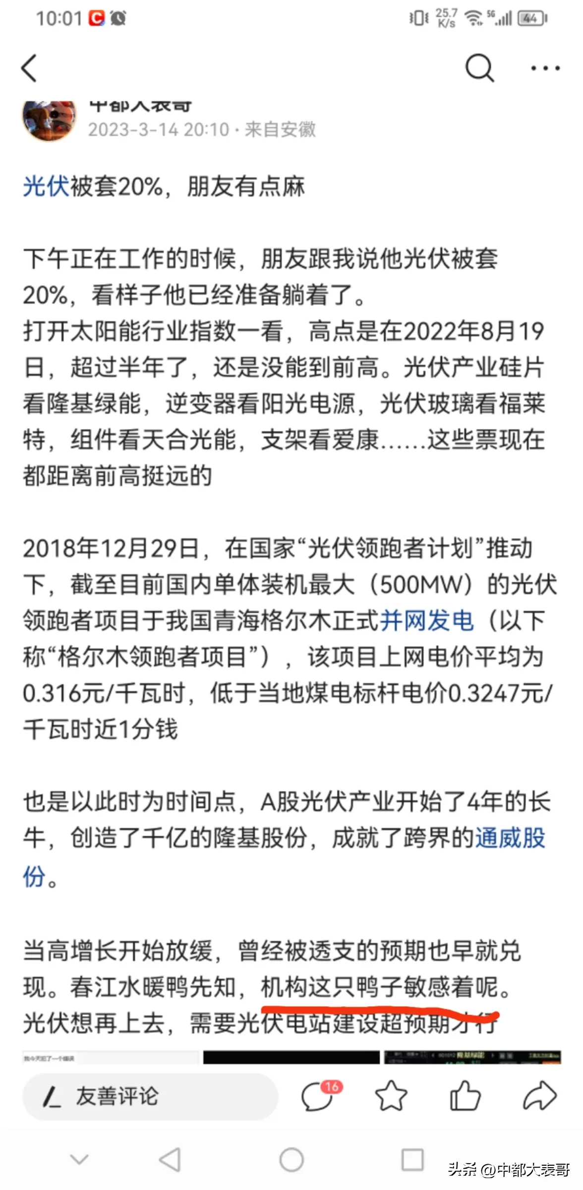 1.一语成谶,光伏大跌,机构出逃,然而或许是机会呢?#光伏#前天下午上班的时候朋友说持有的光伏跌了20%,我就说光伏要想上去需要光伏电站建设速度和规模超预期,也说了机构应该在提桶跑路了。