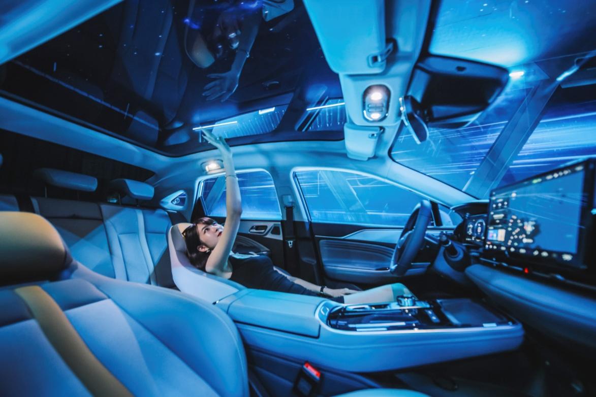 更撩人的还有AION S Plus独有的光感浩瀚天幕。其采用第三代柔性电致变色技术全景天幕,全范围变化时间小于2分钟/平方米,面积达1.9㎡。配合540度全景影像(360度全景影像+透明底盘),打造出科幻感十足的“全景星空房”。其还能隔绝超过99.9%的紫外线,做到透而不晒。
