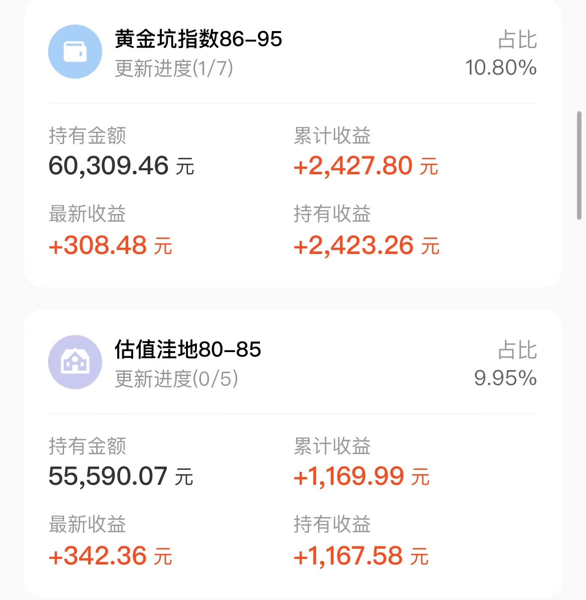 10.在黄金坑和估值洼地时的投入收益见下图:注:因为记账软件内部记录年化收益率的算法不同,与第一张图显示的加权收益率略有差异