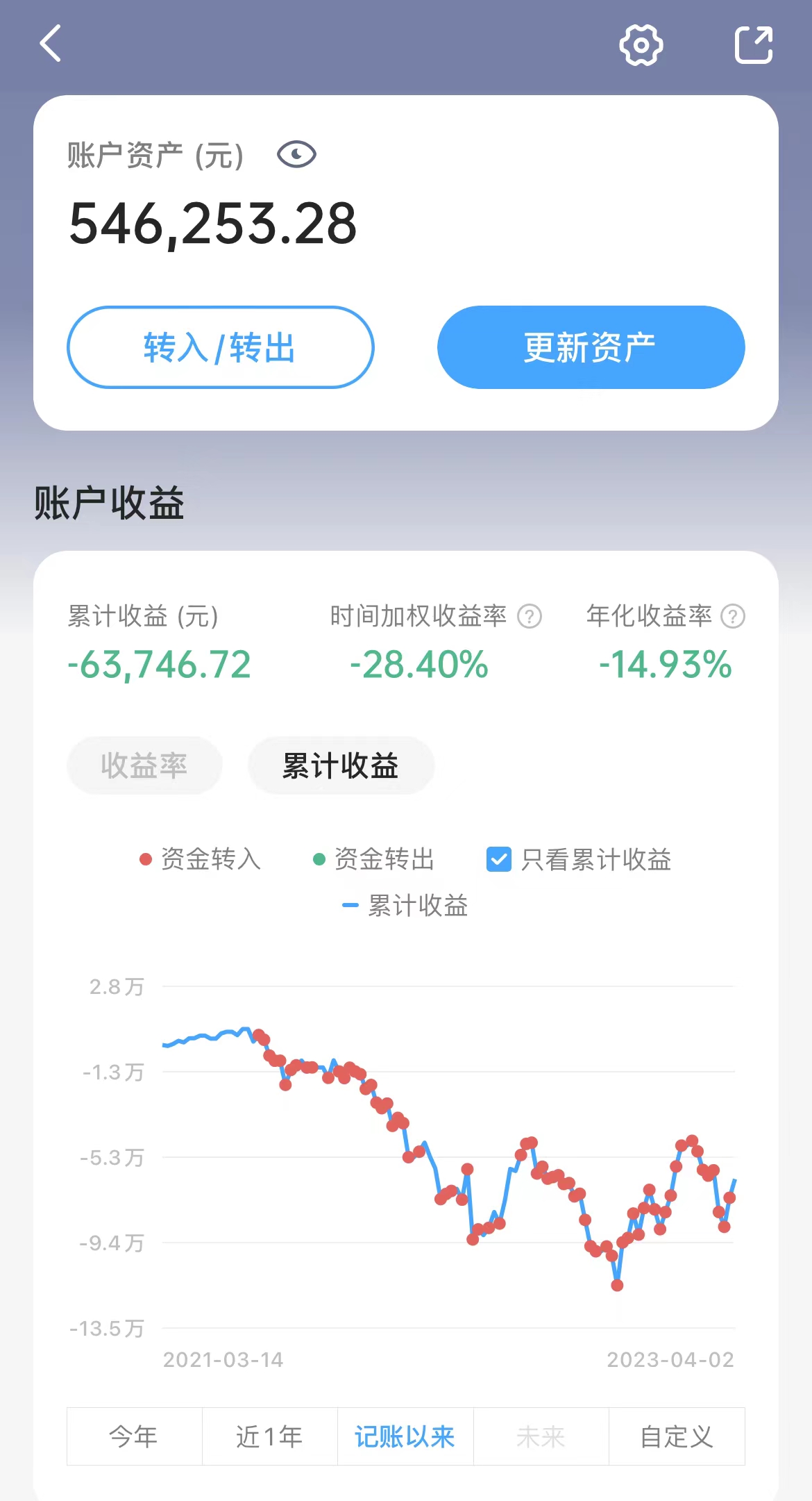 6.上图用记账软件记录的实盘情况,实盘绝对收益比较大幅反弹,目前距离实盘整体回本还有10.45%