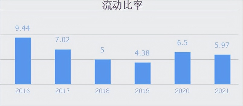 而2021年公司的流动比率为5.97,这意味着当年公司的流动资产能够覆盖近600%的流动负债。