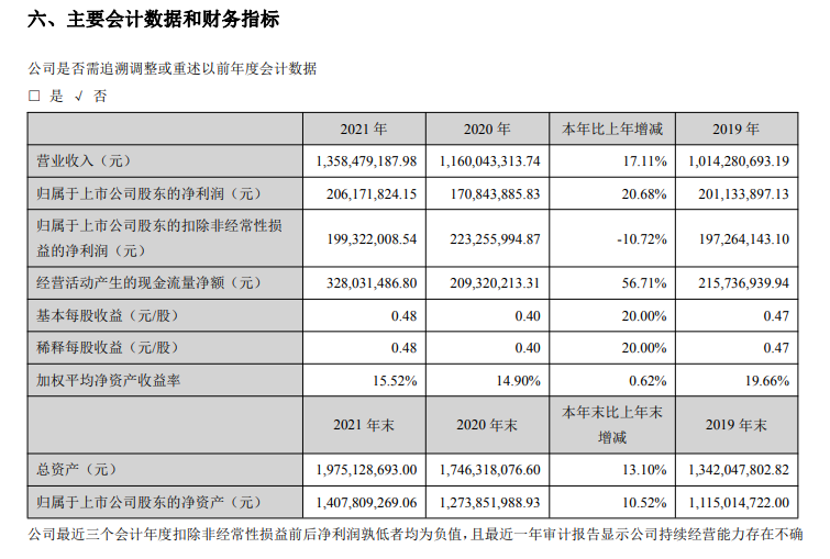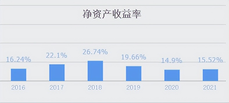 而且,除了2020年净资产收益率略微低于15%,其余年份,净资产收益率保持在15%以上。
