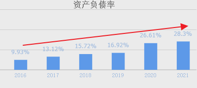 公司的资产负债率自2016年以来呈逐年上升态势。