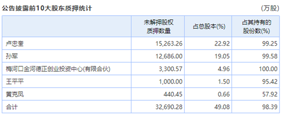 Wind数据显示,截至公司最新披露,卢忠奎未解质押的股份有1.53亿股,占其持有股份的99.25%,占公司总股本的22.92%;黄克凤未解质押的股份有440.45万股,占其持有股份的57.92%,占总股本的0.66%;董事长孙军未解质押的股份有1.27亿股,占其持有股份的99.58%,占总股本的19.05%。