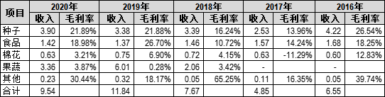 表2:敦煌种业近5年收入分析(单位:亿元)