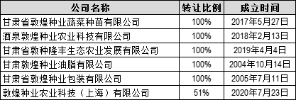 表1:敦煌种业转让公司情况表