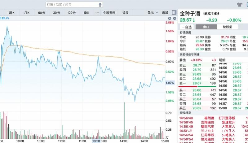20.28日收盘,金种子酒跌0.8%报28.67元。