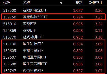 3.ETF方面,截至发稿,香港科技50ETF(159750)、恒生科技ETF(513130)、中概互联ETF(159605)、中概互联网ETF(159607)、恒生互联网ETF(159688)、香港科技ETF(159747)涨超3%