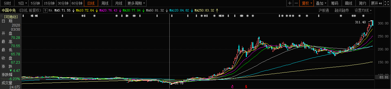 去年12月份,中国中免在经历近4个月盘整后,股价再次拉升,最高涨至311.4元,创下历史新高。粗略计算,陈发树的收益率超240%。
