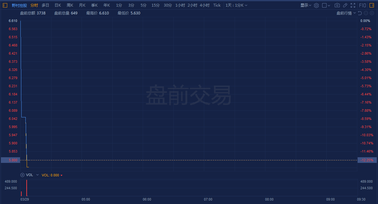 亚太交易时段,中概股爆仓事件的另一家主要银行——日本野村证券(Nomura Holdings, Inc.)股价同样出现大跌。该股早盘大幅跳空低开约11%,午后跌幅进一步扩大至近17%,收盘跌16.3%,创出该股上市以来最大单日跌幅,市值减少32亿美元。