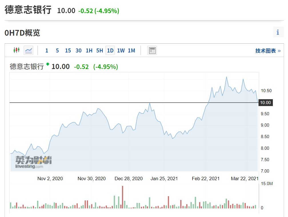 德意志银行也在欧洲时段发声明称,对Archegos基金交易的敞口正在解除。该行同时表示,德意志银行的相关损失比其他银行要有限得多。
