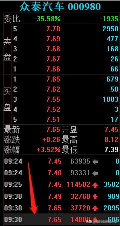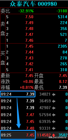 11.10日周四,早盘集合竞价,众泰汽车最后还是高开了0.81%,多头稍微占据优势。
