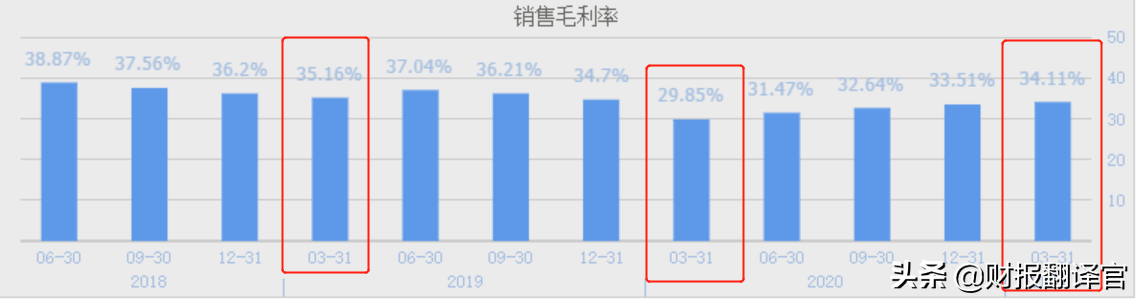 首先看看公司的毛利率,公司2021年一季度的毛利率为34.11%,2020年一季度的毛利率为29.85,高了4%左右。而今年的净利率,比去年同期高了10%以上。所以,今年一季度净利率的上涨,有毛利率上涨的原因,但不是全部。