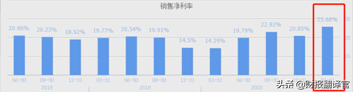 公司2021年一季度的净利率为25.66%,这很可能是公司盈利能力提升的主要原因。